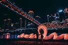 千厮門大橋は、夜景の美しさでも有名です。日が落ちてからは、橋全体がライトアップされ、幻想的な雰囲気を醸し出します。特に、夜になると、橋から見える重慶の夜景はまさに圧巻。高層ビルの明かりが川面に映え、そのきらめきが訪れる者を魅了します。