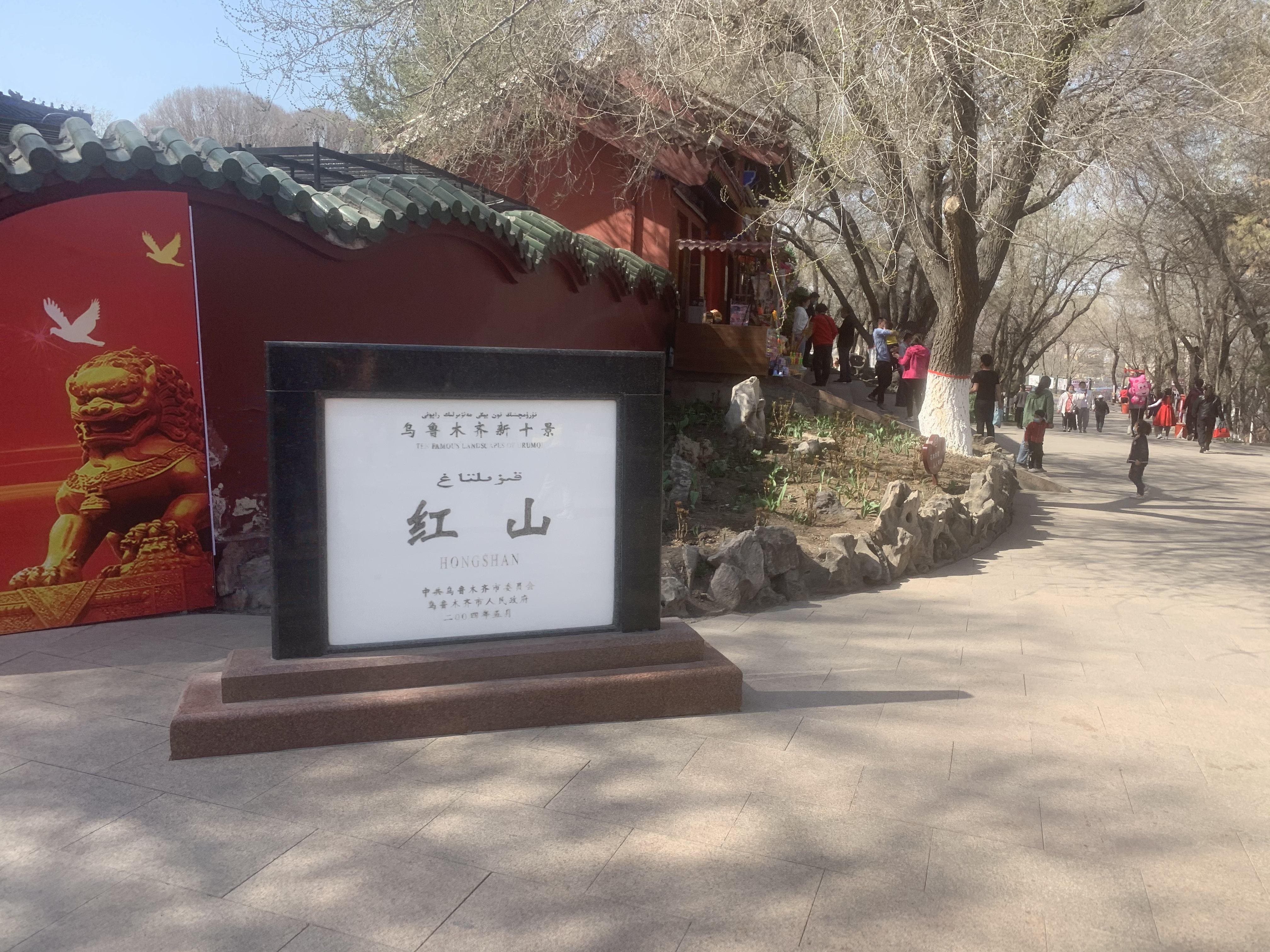 新疆博物館周辺には、博物館だけでなくさまざまな観光スポットが点在しています。たとえば「紅山公園」は、烏魯木齊市民の憩いの場であり、公園の頂上からは市内が一望できます。公園内は緑豊かで、朝散歩やちょっとしたリフレッシュにもぴったりです。